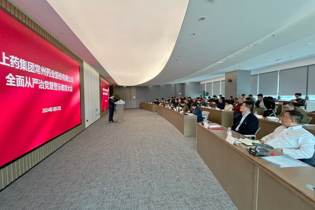 3月22日下午,上藥常藥召開2024年全面從嚴治黨暨警示教育大會。公司中層正職以上干部、各直屬黨支部支委、各子公司黨政班子成員共70余人參加會議。